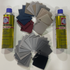 The dimensions and number of cans adhesive is in the product description above. Please remember to pick your color from the chart to the left or below and select it in the drop down box. A color chart is shown below.